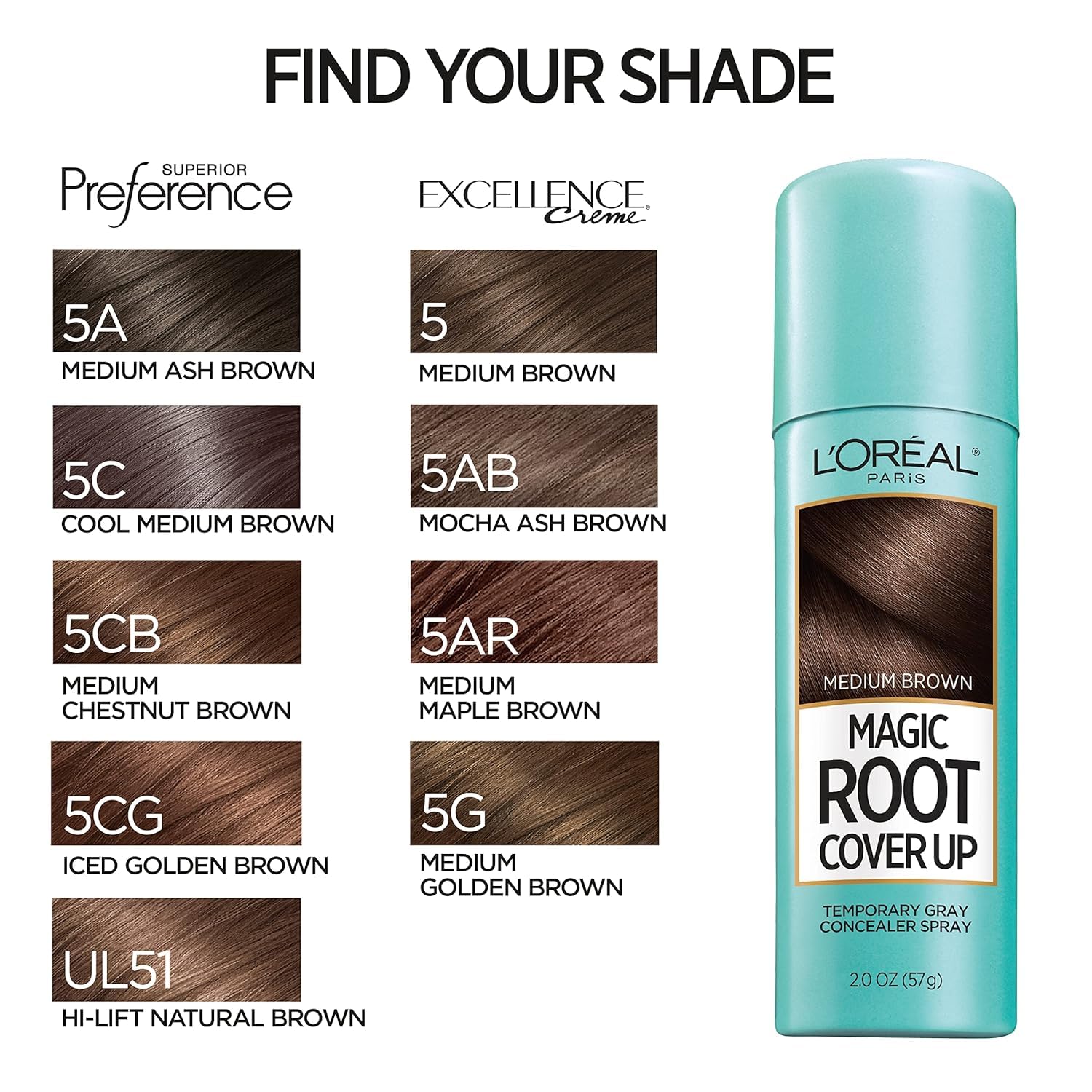 - Match Your L'Oreal Paris Hair Color: Magic Root Cover Up shades are formulated to match your L'Oréal Excellence or Superior Preference shade, for an easy, quick fix between colorings